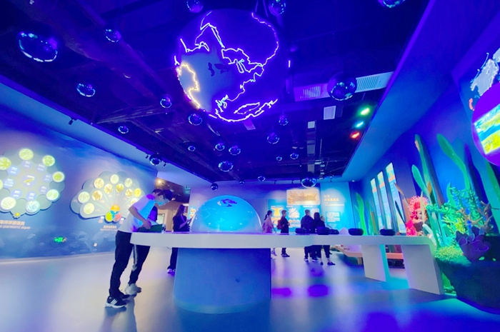 在這里,您可進行游戲互動體驗、觀影體驗、海藻科學魔術、康養設備體驗、海藻美膚體驗等等,沉浸式感受海洋現代科技,領略海藻神奇應用。