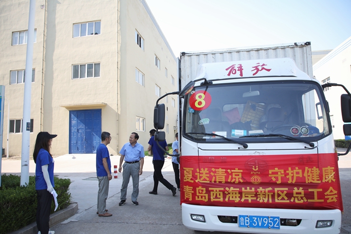 西海岸新區總工會“高溫送清涼”暖心抵達明月海藻集團